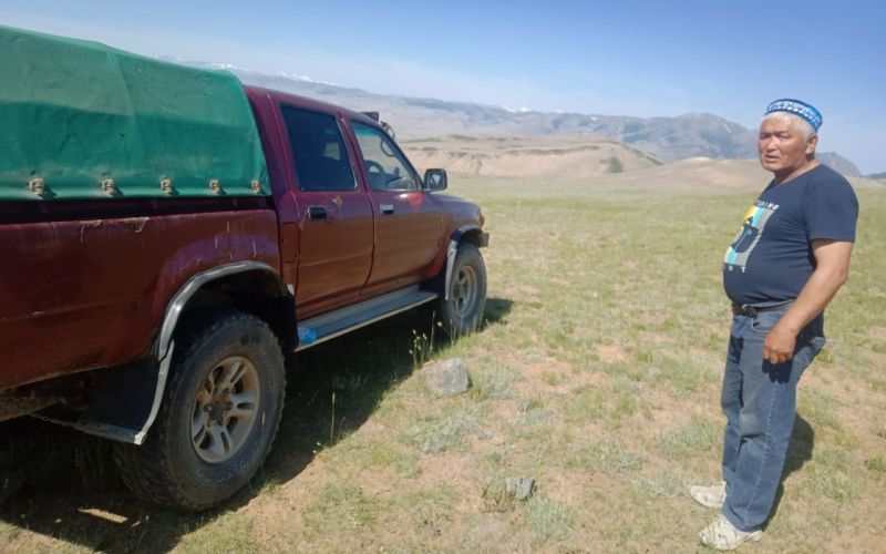 С замиранием сердца садимся в его старенький сурф и едем к цели. Едем сначала по асфальту, примерно 10 км, потом резкий поворт в сторону, на грунтовку, которая все время идет в гору. Потом она исчезает вовсе, мы едем просто по склону вверх насколько позволяет угол наклона. Кругом торчат камни, большие и маленькие, лавируем между ними. Видно, что не в первый раз едет сюда Андриян Адаевич. Уверенными движениями выполняет виртуозные маневры между остроконечных глыб. Одно неверное движение, и можно напороться на острые камни, и тогда прощай, колеса!