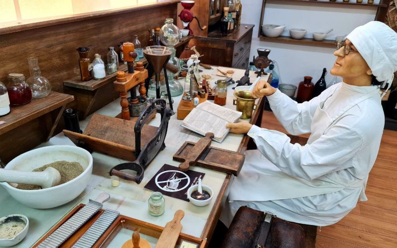 Изготавливали их тут же, на втором этаже здания в лаборатории по специальным рецептам и сигнатурам. О чем свидетельствуют многочисленные экспонаты, дошедшие до нас: приспособления для резки растений, каменные ступы с пестами и другая аптечная утварь.