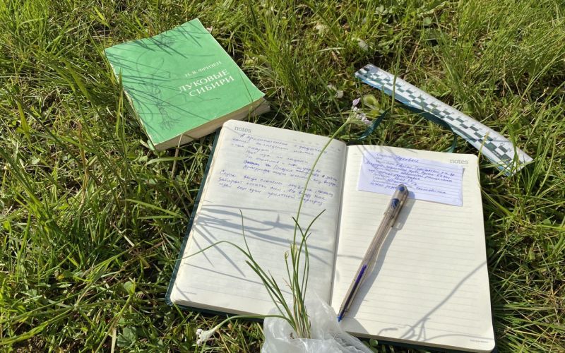 Утром, в первую очередь, нужно было определить два экземпляра лука, что были найдены накануне. На случай обнаружения неизвестных видов мы с собой взяли книгу Н. В. Фризена «Луковые растения Сибири».