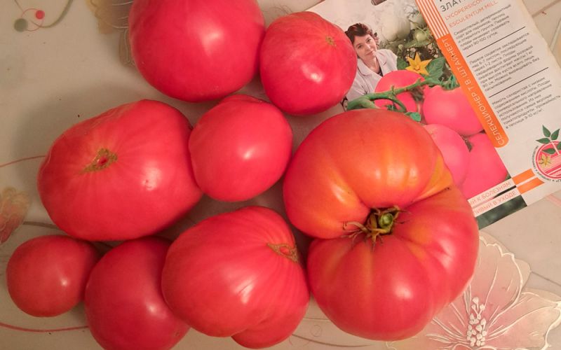 Освобождаю от созревших плодов кусты томата Златоуст. Томаты получились одинаковой формы, но разные по размеру и весу. Самый крупный составил 422 г. Вкус у томатов отменный! Плоды сочные, мясистые.