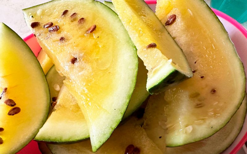В этом сезоне удалось вырастить сочный и сладкий арбуз – Солнце Павлодара. Выращивала арбуз в теплице. Выжил всего один, остальные почему-то засохли. Арбуз среднего размера, с жёлтой мякотью и ярко выраженным арбузным вкусом. Для меня это был первый опыт выращивания жёлтого арбуза. Результатом осталась довольна. Тестирование пройдено успешно.