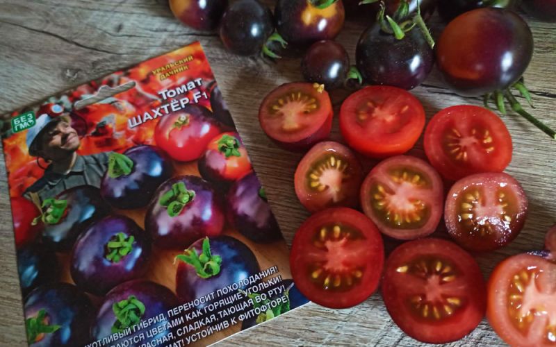 А он на самом деле похож на шахтёра. Чумазенький, ой нет, томат с антоцианом! Шахтёр F1 покорил своим вкусом всю семью. А я в восторге от его урожайности и красоты самих кустов и, конечно же, помидорок. В середине сентября, наконец то добралась, чтобы обрезать листья. Всё лето подходили к Шахтёру F1 только для снятия урожая.
