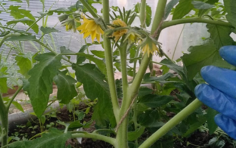 Подскажите пожалуйста где на фото томата соседская зависть главный ствол , а где пасынок под цветочной кистью (для ведения в два ствола). Этот вопрос возник потому что в этом выросшем у меня томате цветочная кисть идёт ровно посередине двух стволов, какой из них тогда является главным, чтобы вести в один ствол? Цветок очень большой и махровый с зелеными листочками внутри. Первый раз такое вижу. На всей рассаде в теплице у этого томата такие цветки. Это нормально?