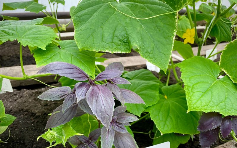 — Огурец чаще высаживают в конце мая – начале июня. Рассаду базилика – на пару недель раньше. Но, если говорить о сроках высадки, необходимо учитывать погодные условия, и если стоит жара или холод, их нужно сдвинуть, – делится селекционер. — Культуры отлично соседствуют в течение всего вегетационного периода. Более того, базилик не только уплотняет и интенсифицирует отдачу земли, но и во время цветения выделяет эфирные масла, которые благоприятно сказываются на вкусовых качествах основной культуры – огурца.