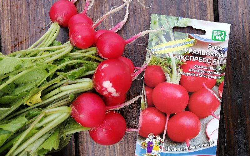 Редис Уральский Экспресс. Посеян в открытый грунт 10 августа 2021 (так уж получилось). Прекрасно взошёл и завязал плоды, невзирая на погодные условия и атаки полчища слизняков! Плоды ровные, без трещин; мякоть нежная, сочная, практически не горчит.