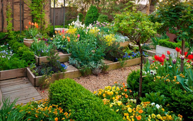 Высокие грядки: используйте высокие грядки, которые выглядят опрятно и служат элементом садового дизайна.