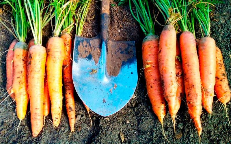 Морковь совершенно не выносит резких перепадов влажности почвы и моментально реагирует на это образованием трещин. Поэтому поливы на моркови должны быть регулярными и обильными под корень из расчета 10-15 л на 1 м2 – 1 раз в 10 дней с последующим рыхлением. Пучковая спелость наступает в зависимости от спелости сорта во второй декаде июля – второй декаде августа. Но торопиться с уборкой корнеплодов не стоит. Те биологически активные вещества, ради которых мы и выращиваем морковь, - каротин и аскорбиновая кислота, достигают своего максимума в период с 10 по 20 сентября. Поэтому раньше копать морковь этих сроков – равносильно убирать «пустышку». Да и хранится рано убранная морковь значительно хуже. Также хуже хранится морковь, убранная из подзимнего посева. Поэтому такие посевы следует планировать исключительно для свежего потребления. Среди многообразия сортов и форм моркови предпочтение следует отдавать отечественным. Они богаче по своему биохимическому составу в силу своего происхождения. Импортные образцы, как правило, имеют отличный товарный вид, но проигрывают по содержанию биологически активных веществ. В зимнее хранение следует брать сорта с высоким содержанием сухого вещества, которого также больше у отечественных форм. При уборке моркови следует выбирать пасмурные сухие дни с умеренной температурой воздуха. В жаркие солнечные дни морковь сильнее поражается сухими фомозными гнилями. Отделять ботву от корнеплода необходимо сразу после выкопки, иначе они дрябнут и будут плохо храниться. Если корнеплоды убираются на товарные цели, то ботва обрезается по «плечики» вместе с частью корнеплода. Если корнеплоды предназначаются для семенных маточных целей, то необходимо оставлять ботву длиной 2-3 см и хранить такие корнеплоды отдельно. Морковь хорошо сохраняет свои товарные качества при хранении ее в песке, в полиэтиленовых открытых пакетах, в сухом торфе. Для лучшей ее сохранности корнеплоды можно пересыпать золой, поддерживать температуру в хранилище не выше + 4 °С и относительную влажность воздуха не выше 60 %. Закладывать корнеплоды на хранение в предварительно подсушенный и продезинфицированный погреб. При появлении первых очагов гнилей хранения необходимо корнеплоды перебрать, удалить все поврежденные и очаг желательно обработать толченым углем.