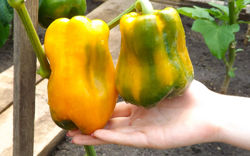 Имеет МЕГАТОН ЗОЛОТОЙ F1 и еще одну очень хорошую особенность: кожица у него настолько плотная, что является настоящим защитным щитом, препятствуя повреждению при транспортировке. Именно поэтому гибрид может длительное время храниться, сохраняя прекрасный товарный вид. Более того, благодаря плотной кожице плоды с легкостью переносят небольшие заморозки, в то время как перчики с нежной кожицей других сортов могут запросто повредиться.