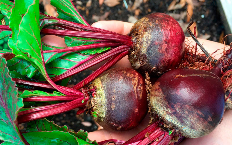Особенностью свёклы столовой среди других овощных культур является ее солевыносливость, хорошо растет при концентрации почвенного раствора до 1,5 %. Лучшие предшественники для свёклы – огурец, лук, зеленные; удовлетворительные – бобовые, ранний картофель, чеснок; плохие – капуста, томат, свёкла, морковь, кабачок. При осенней перекопке целесообразно внести в грунт перегной 5-7 кг/м2, на кислых почвах обязательно известь пушонку 500 г/м2. Дозы минеральных удобрений должны быть выше, чем для моркови. При расчете потребности в семенах следует исходить из того, что в 1 г – 60-90 клубочков, норма высева 1,0 г/м2. К моменту уборки на 1 м2 в среднем должно быть 40-45 растений. Если клубочки свеклы прогреть в воде +48 °С, а потом быстро охладить в холодной, то прорастание семян ускоряется на 10-14 суток. У сортов с корнеплодами округлой формы период вызревания от посева до уборки занимает 70-80 суток, длинной конусовидной 100-110 суток. Чем дольше период вегетации, тем крупнее вырастают корнеплоды, но тем они и грубее. Поэтому высевать свёклу можно в три срока: 10-15 мая, в июне, а раннеспелые сорта – в первых числах июля. При поздних сроках посева к уборке в сентябре вырастают некрупные корнеплоды массой 60-100 г, которые будут хорошо храниться. Качественные корнеплоды свёкла дает только при достаточной площади питания. Расстояние между рядами должно быть 35-45 см, а в ряду 8-10 см. Глубина заделки семян 4-5 см. Перед посевом бороздки нужно хорошо пролить. По достижении растениями высоты 3-5 см посевы нужно проредить. Растения, извлеченные после прореживания, можно использовать как рассаду. Необходимы регулярные рыхления и поливы почвы 1 раз в 10-12 дней с нормой полива 30 л/м2. Выкапывают корнеплоды по мере надобности, окончательно завершая уборку 20-25 сентября. При опасности заморозков до -3 °С растения с цилиндрическим корнеплодом, выступающим над поверхностью почвы, нужно окучить. Свекла хорошо хранится в открытых полиэтиленовых пакетах.