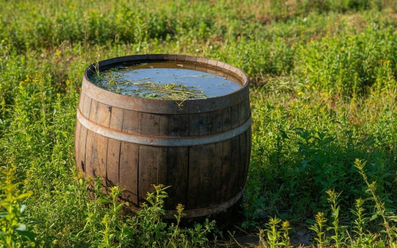 Остатки зелени из бочки можно использовать повторно или удобрить ими плодовые деревья, закопав в ямки рядом со стволом примерно на штык лопаты.