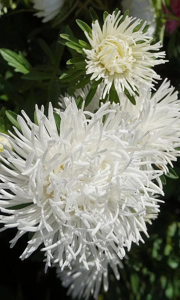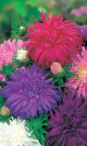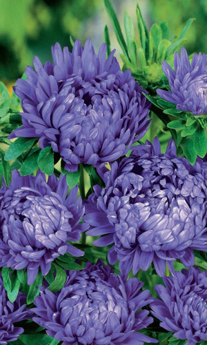 Тип – пионовидная. Идеальное растение для срезки. Куст мощный, пирамидальный, высотой 60-70 см, 35-50 см в поперечнике. Цветоносы слабо облиственные, до 40 см длиной. Соцветия густомахровые, полусферические или шаровидные, 8-10 см в диаметре, синего цвета. Язычковые цветки широкие, ладьевидные, до 4 см длиной, все направлены вверх и загнуты внутрь. Куст несёт до 12 цветущих соцветий. Используются в обсадке и для срезки. ...