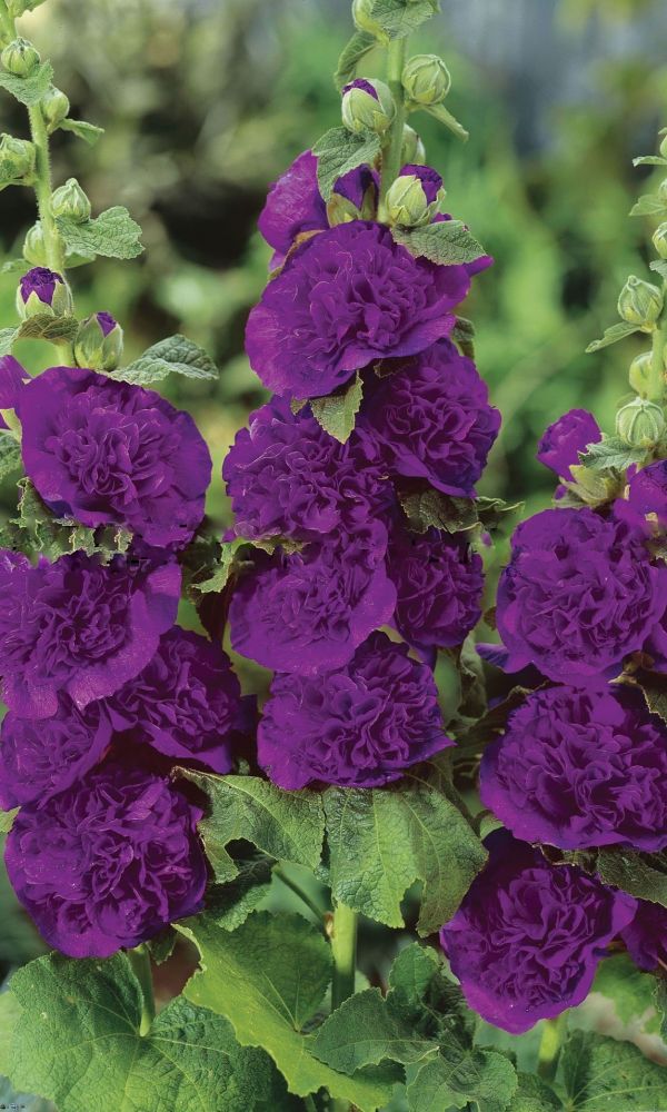 Многолетнее растение, выращиваемое как двулетнее. Растение формирует куст высотой 150-200 см с крупными цветками пурпурно-фиолетовой окраски. Соцветия – гигантские вытянутые кисти, состоящие из махровых цветков диаметром 8-12 см. Цветение начинается в конце июня и продолжается до сентября. Используют мальву для декорирования стен, оград и, конечно, для срезки.