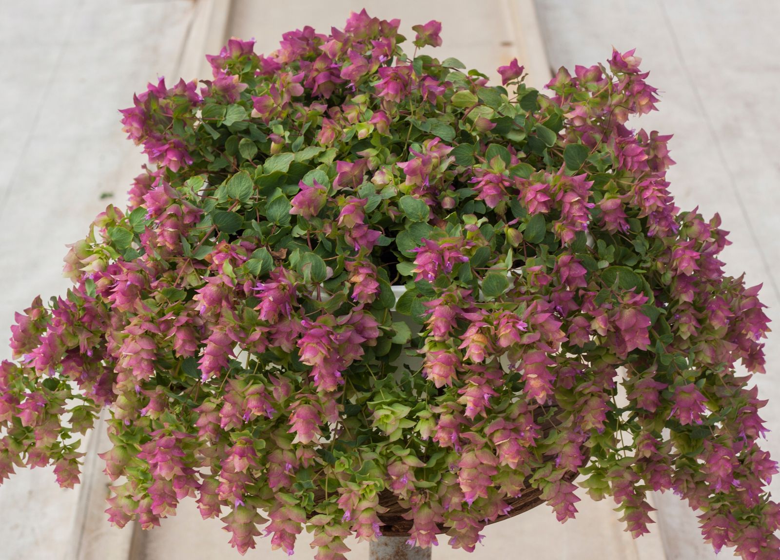 Декоративный орегано от американской компании PanAmerican Seed. Растение очень оригинальное с большими фиолетово-зелёными прицветниками, мелкими сиреневыми цветами и светло-зелёной листвой. Для более яркого фиолетового оттенка растению нужно больше света или прохладные ночные температуры. Аромат приятный и очень привлекателен для насекомых-опылителей. Кустики очень плотные, высотой 20-25 см и шириной 30-40 см. Используется в подвесных корзинах, альпийских горках, сушёных цветочных композициях.
