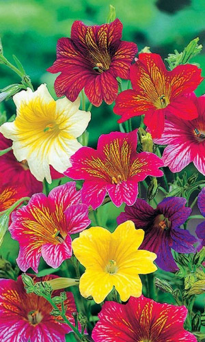 Сальпиглоссис Али-баба - это один из самых экзотических однолетников. Цветки ярких окрасок с оригинальными контрастными прожилками хороши как в букете, так и в ландшафтном оформлении. Высота 70-80 см.