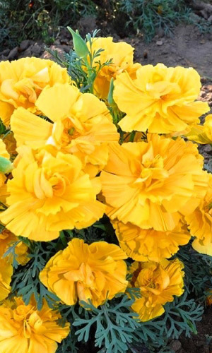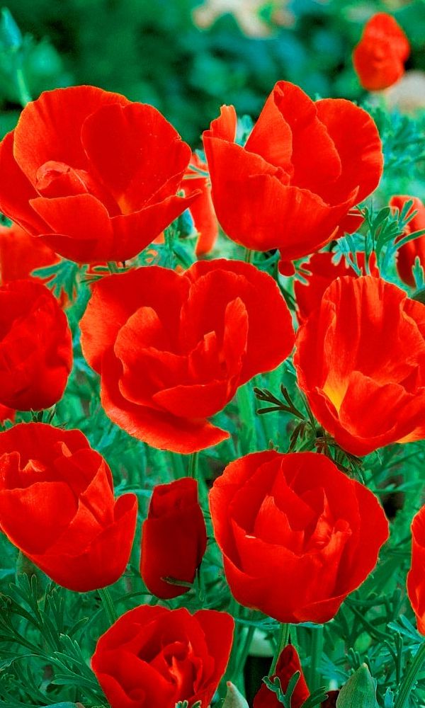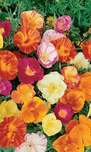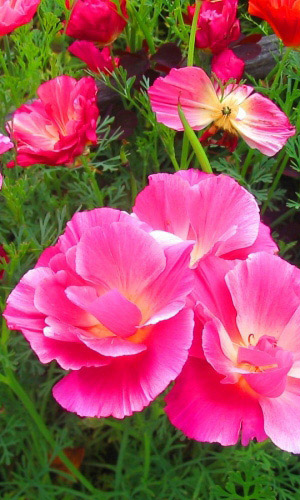 Нежное, красивое растение, высотой 45 см. Листья серо-зелёные, ажурные. Цветки одиночные, простые и махровые, 7 см в диа мет ре, различной окраски: белые, кремовые, розовые, жёлтые, оранжевые, пурпурно-красные. Лепестки блестящие, шелковистые, гладкие. Цветение обильное с июня...