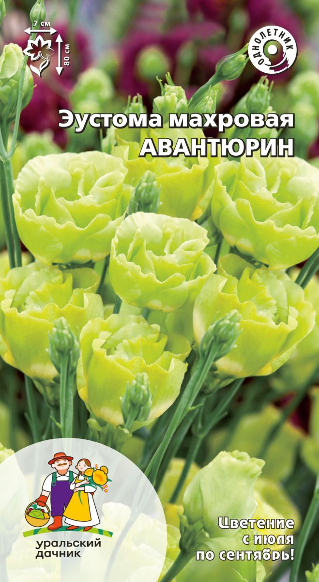 Необыкновенно красивое многолетнее растение, выращиваемое как однолетнее или оранжерейное и используемое преимущественно для получения роскошной срезки. Куст прямостоячий, с высокими прочными цветоносами, на каждом из которых образуется огромное количество бутонов. Большие, пышные цветки необычной зеленоватой окраски, по форме очень напоминающие розочки, создают атмосферу праздника и подарят массу положительных эмоций. Великолепное комнатное украшение. Букет из эустомы прекрасно стоит в вазе, постепенно раскрывая новые бутоны. Отличается очень обильным цветением.