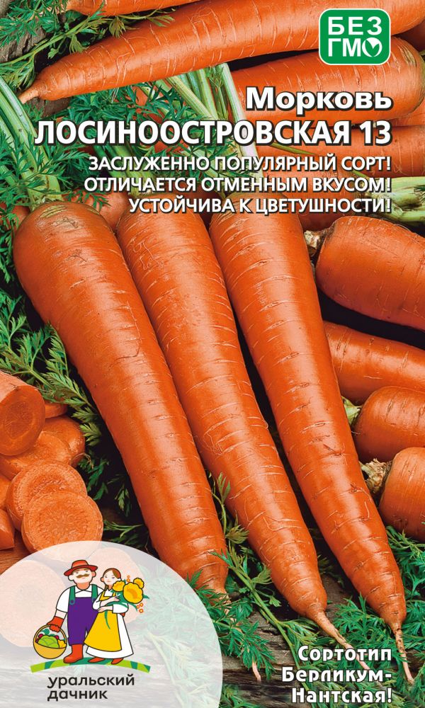 Сроки созревания: cреднеспелый, от всходов до технической спелости проходит 85 дней. Корнеплод цилиндрический, длиной до 15 см, массой 150-170 г. Поверхность гладкая; мякоть оранжевая, сочная. Содержание каротина до 21%. Устойчив к цветушности. Для использования в свежем виде, переработки, на детские соки. Очень высокое содержание каротина делает сорт незаменимым для приготовления детского и лечебного питания. Хорошая урожайность и качество корнеплодов делают сорт пригодным для выращивания не только для собственного потребления, но и на реализацию.