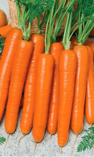 Невероятно урожайный, среднеспелый гибрид сортотипа Нантская. Корнеплоды оранжевые, цилиндрические, с тупым кончиком, гладкие, выровненные, длиной 20 см, массой 90-140 г, полностью погружены в почву. Сердцевина маленькая, оранжевая. Вкусовые качества отличные. Рекомендуется для употребления в свежем виде, кулинарной переработки, приготовления соков и хранения.
