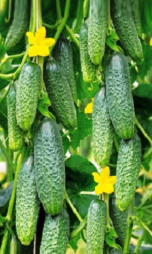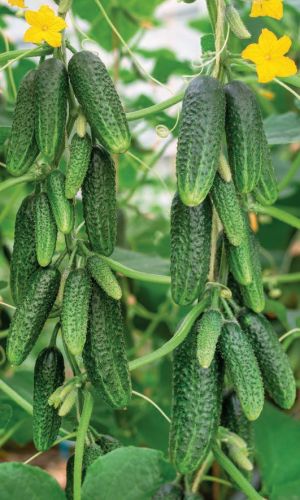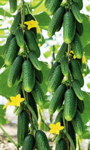Неприхотливый, партенокарпический, пучковый гибрид для теплиц и плёночных укрытий. Плоды зелёные, с мраморностью (белые полосы достигают 2/3 плода), цилиндрической формы, с тупым кончиком, редкобугорчатые, сочные, сладкие, хрустящие, без горечи. Шипы на ранней стадии (пикули) белого цвета, затем бурые.Ценность сорта: холодостойкость, теневыносливость, укороченные боковые побеги, выравненность плодов. После сборов плодов в тех же самых междоузлиях закладываются новые завязи...