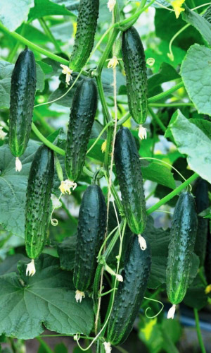 Скороспелый высокоурожайный холодостойкий гибрид женского типа цветения для весенних теплиц, тоннелей и открытого грунта. Плоды цилиндрической формы, интенсивно-зелёные, крупнобугорчатые, белошипые, длиной 13-15 см, сочные, ароматные, хрустящие, без горечи.