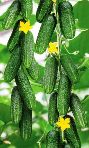 Если этот Боец F1 приступит к решительным действиям, жди небывалой огуречной «атаки»! Гибрид среднеспелый, от всходов до плодоношения – 46-53 дня. Растение сильнорослое, женского типа цветения. Плоды – генетически без горечи, цилиндрической формы, массой 50-90 г, длиной 6-9 см, зелёные и тёмно-зелёные, с короткими и средней длины продольными полосами, пятнистостью и ребристостью. Если Бойца F1 вовремя «кормить» и уделять ему внимание, урожайность может быть 10-12 кг с 1 м2. Вкусовые качества свежих и консервированных корнишонов прекрасные. Бойцу F1 никакой «враг» не страшен, он стойко противостоит распространённым болезням огурца.