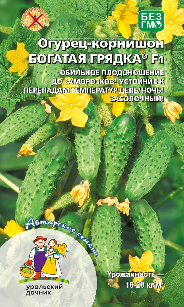 Ультраскороспелый самоопыляемый гибрид для открытого грунта и теплиц. Растения среднерослые, с женским типом цветения. Зеленцы крупнобугорчатые, короткие, цилиндрические, белошипые, массой 100-115 г, плотные, без пустот и без горечи, хрустящие. Вкусовые качества превосходны, без пустот и горечи.
