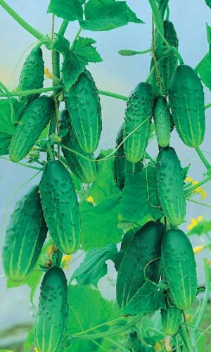 Скороспелый, высокоурожайный, пучковый гибрид женского типа цветения, для выращивания в плёночных теплицах и открытом грунте. Плоды тёмно-зелёные, белошипые, среднебугорчатые, длиной 11-13 см, выровненные, с отличным вкусом, без горечи, долго не желтеют.