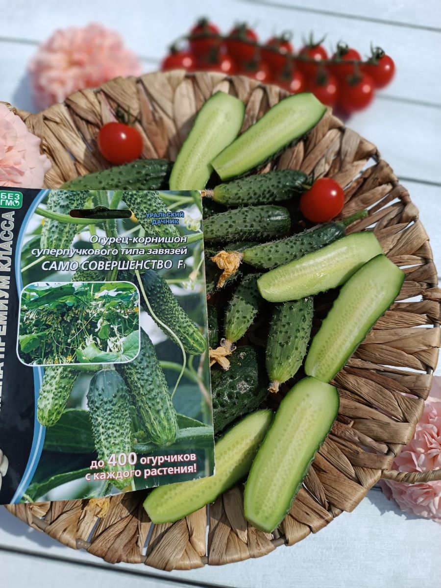 Тёмно-зелёные крупнобугорчатые корнишончики не только собирать приятно, но и в банке, и на столе они будут украшением. В отличие от других сортов, плоды не горчат, даже при неблагоприятных погодных условиях. Поэтому из него Вы всегда можете приготовить вкусный салат, который придётся по вкусу и родным, и гостям. Урожай 27-30 кг/м2.
