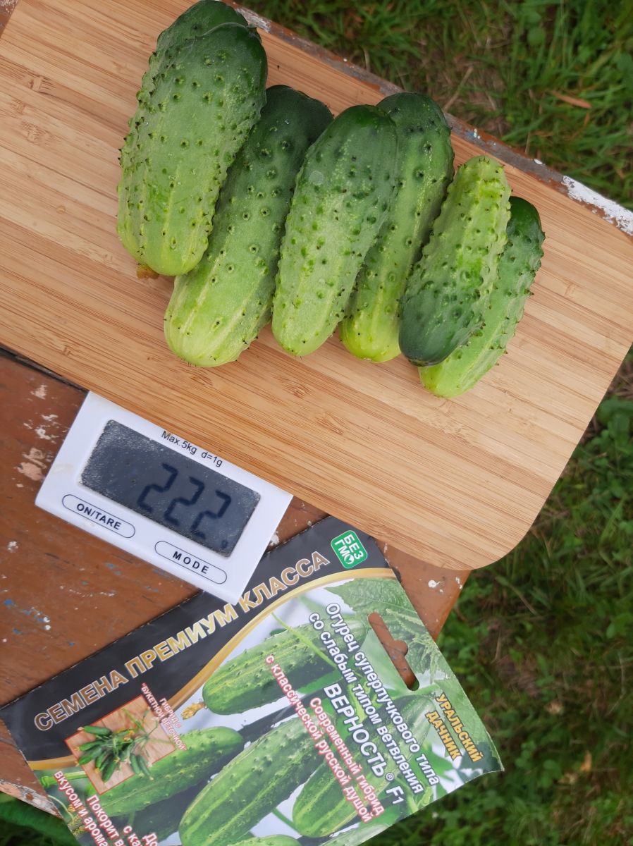 Один из самых популярных гибридов, суперпучковый корнишонный гибрид женского типа цветения для открытого грунта, тоннелей, весенних теплиц. В плодоношение вступает очень рано на 35-37-й день от всходов. В узлах формируется до 10 и более завязей. Невероятно холодостойкий гибрид, с лёгкостью переносит кратковременные похолодания. Ветвление слабое, что позволяет значительно упростить уход за растениями, за счёт отсутствия необходимости в его формировании. Характеризуется обильным и массированным плодоношением в любых, даже самых сложных условиях выращивания. Зеленцы бугорчатые, черношипые, овально-цилиндрической формы, длиной 8-10 см. Засолочные и вкусовые качества просто превосходны(!). Устойчив к оливковой пятнистости, вирусу обыкновенной огуречной мозаики, толерантен к мучнистой росе и ложной мучнистой росе.