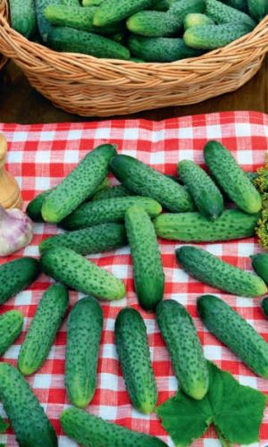 Среднеспелый (55-62 дней) партенокарпический гибрид для открытого грунта и плёночных укрытий. Растение сильнорослое, женского типа цветения, число женских цветков в узле 1-3. Зеленцы короткие, цилиндрические, слаборебристые, тёмно-зелёные, крупнобугорчатые, с белым опушением, длиной 8-10 см, массой 70-75 г, хрустящие. Вкус отличный. Урожайность 4,6-5 кг/м2.