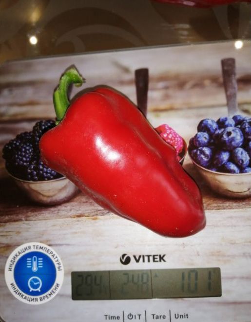 Растение детерминантное, небольшое, компактное, штамбовое, высотой 25-30 см. Расположение плодов букетное. Очень дружное формирование урожая. Урожайность 1,8 кг/м2. Для открытого и закрытого грунта. Подходит для выращивания на окне. Для получения максимального урожая растения высаживают загущено. Сроки созревания: скороспелый. Период от полных всходов до технической спелости 107-111 дней. Плод конусовидной формы с заострённой верхушкой, средней величины. Масса плода 48 г (до 70 г). Толщина стенки 5-6 мм. Окраска плода в технической спелости салатная, в биологической-красная.