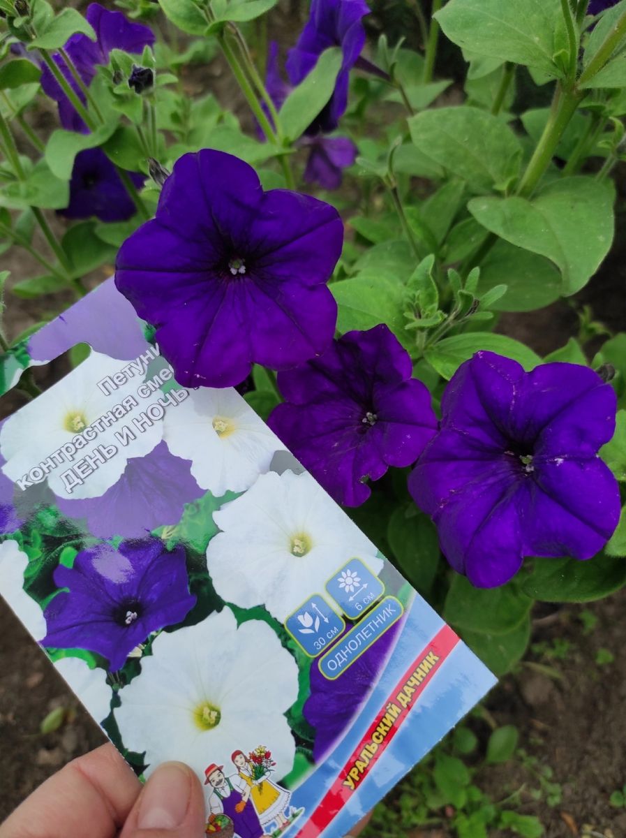Подлинный шедевр среди петуний – «День и ночь» – с великолепными поникающими побегами – не может не вызывать восхищения! На протяжении всего лета будет раскрывать каскады тёмно-фиолетовых и белоснежных соцветий. Крупные цветки очень устойчивы к неблагоприятным погодным условиям и долго сохраняют свою декоративность. Никакое другое растение в такой степени, как петуния, не подходит для оформления комфортных и романтических уголков для отдыха.
