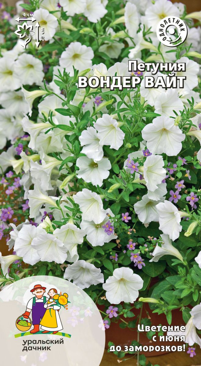 Модное сочетание белых соцветий и нежно-зелёной листвы. Красивые крупные чисто-белые цветы украшают плотный кустик высотой около 25 см. Обильно цветёт с июля по сентябрь. Используют в клумбах для ярких групп, на бордюрах, рабатках, в подвесных корзинках.
