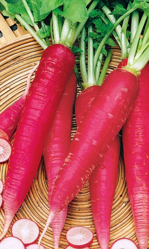 Позднеспелый, очень урожайный сорт для открытого грунта. Созревает через 35-47 дней после посева. Корнеплоды ярко-красные, удлиненно-цилиндрические, крупные, длиной до 20 см, массой до 100 г. Мякоть белая, хрустящая, сочная, долго не теряет сочности, приятной плотности и прекрасного вкуса.
