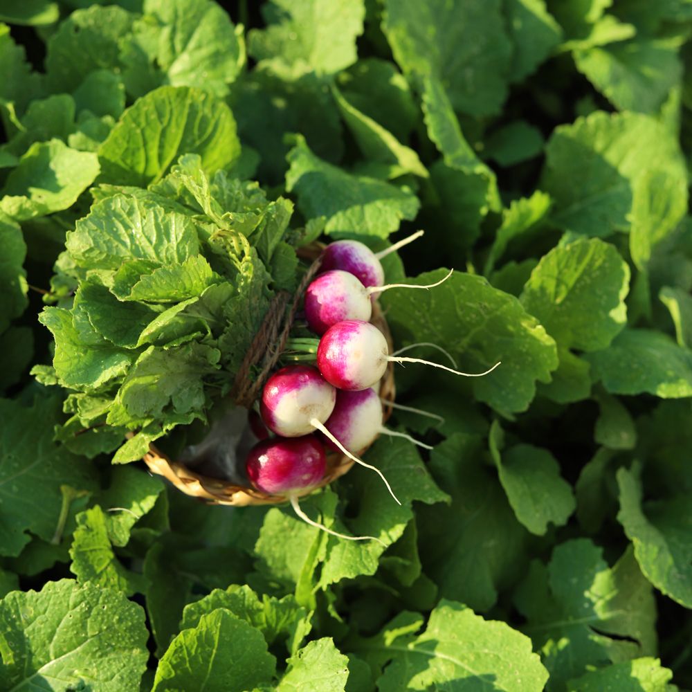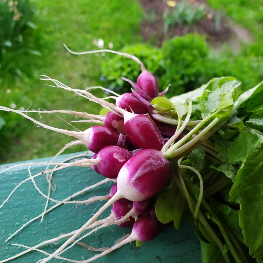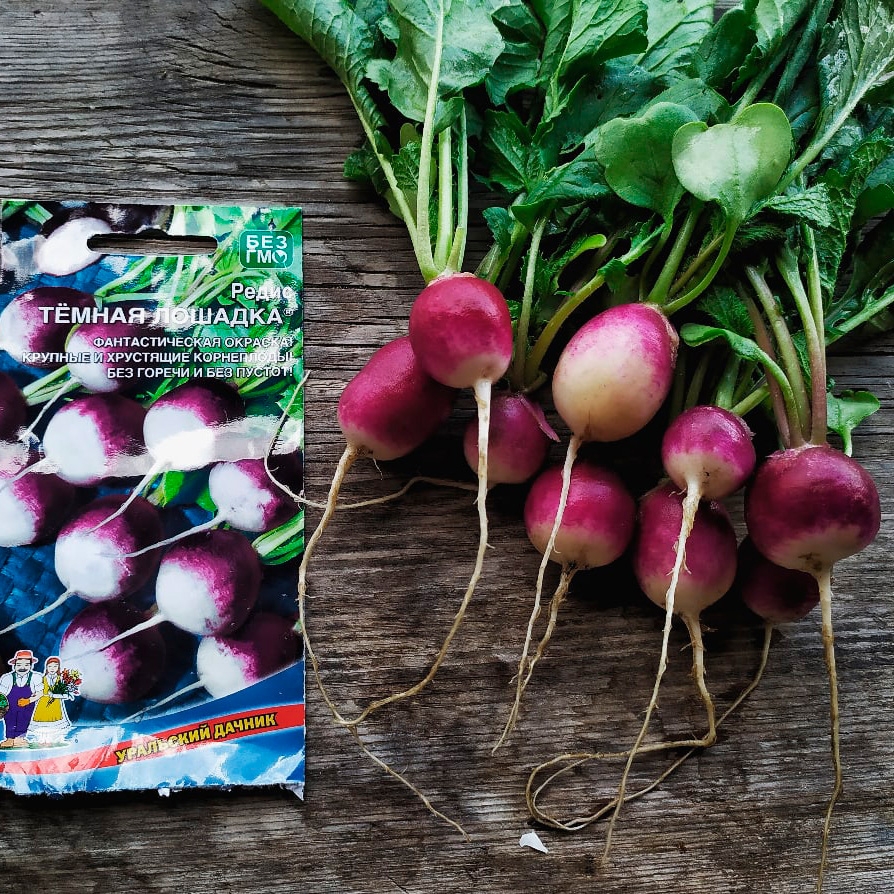 Редис КОРОЛЕВА МАРГО — Настоящая королева среди редисов! Корнеплоды гранатового-рубинового цвета, крупные, сочные с белоснежной мякотью!