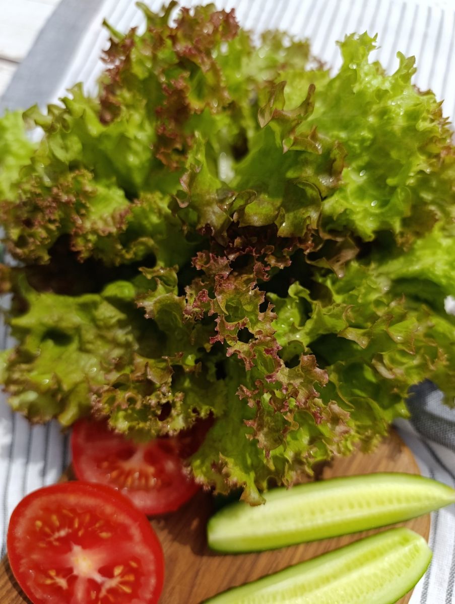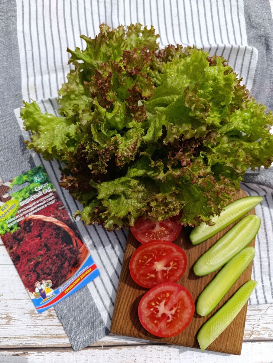 Высокоурожайный раннеспелый листовой сорт. Листья декоративные, гофрированные, красно-малиновые, нежные, хрустящие, формируют розетку диаметром 20-25 см.