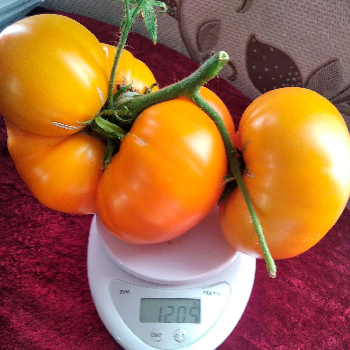 Небывало урожайный, среднеспелый сорт для открытого и закрытого грунта. Плоды ярко-жёлтого цвета, плоскоокруглые, очень крупные массой 250-300 г, мясистые, очень сладкие, устойчивы к растрескиванию, хорошо переносят транспортировку.