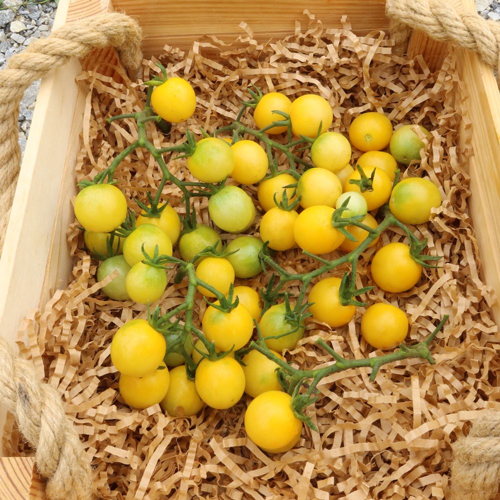 «Детский» томат с недетским ростом – так можно описать в нескольких словах сорт Дублон золотой. Почему «детский»? Все просто – эти помидоры очень любят все малыши. Если услышите неспецифический треск и увидите содрогающийся от тряски томатный куст, не удивляйтесь, – это ваши ребятишки обнаружили чудо-«дерево» с вкуснейшими черриками и лопают их за обе щёки! И пусть детки лакомятся этими природными витаминками, ведь сорт безумно урожайный, и растение буквально увешано маленькими золотыми шариками. Поэтому пара-тройка таких «деревьев» на участке – уже достаточно. Хватит и от пуза всем домочадцам наесться, и после засолить несколько баночек с аппетитнейшими янтарно-жёлтыми помидорками на зиму. Надо сказать, что в закатках они смотрятся невероятно привлекательно и нарядно.