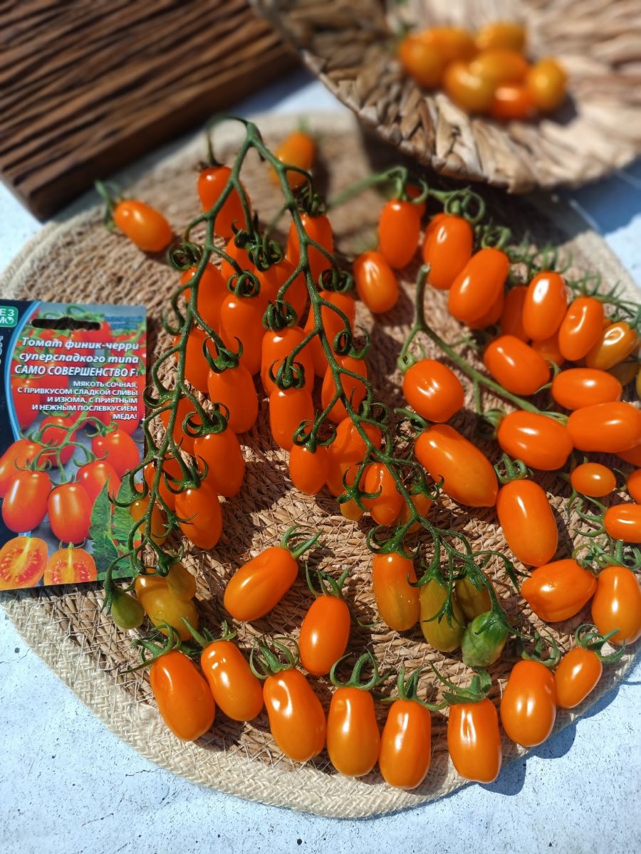 Один из самых сладких и вкусных томатов! Плоды Само совершенства F1 имеют необычайно сочную, сахарную мякоть с нотками сладкой сливы и изюма и приятным, нежным послевкусием мёда. Вкус незабываемый, деликатесный, уникальный, его сложно спутать с другими помидорами!