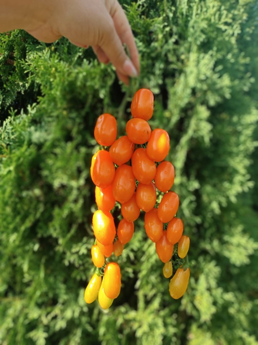 Гибрид раннеспелый, для выращивания в открытом грунте и под плёночными укрытиями, где демонстрирует превосходную урожайность. Томаты мелкие – по 10-15 г, цилиндрической формы. Отличаются от своих собратьев тем, что не осыпаются и не растрескиваются. Отведаешь такие сахарно-медово-фруктовые плоды, и на уме: «Вы само совершенство, вы само совершенство! (…) Ах какое блаженство, ах какое блаженство!..»
