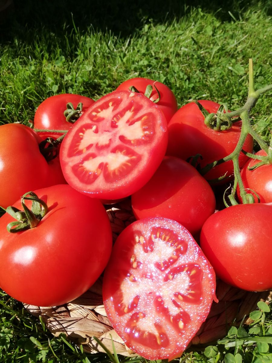 Уникальный раннеспелый гибрид. Томаты высокорослые, средневетвистые, формируют один стебель при плотности посадки 3 растения на м2. Гибрид имеет кисть из 5-7 плодов массой 200-500 г каждый. Плоды красные, округлые, гладкие, плотные, очень красивой формы. Мощные густые ветви гнутся под тяжестью плодов – 8,5 кг томатов с куста, чего ещё желать!