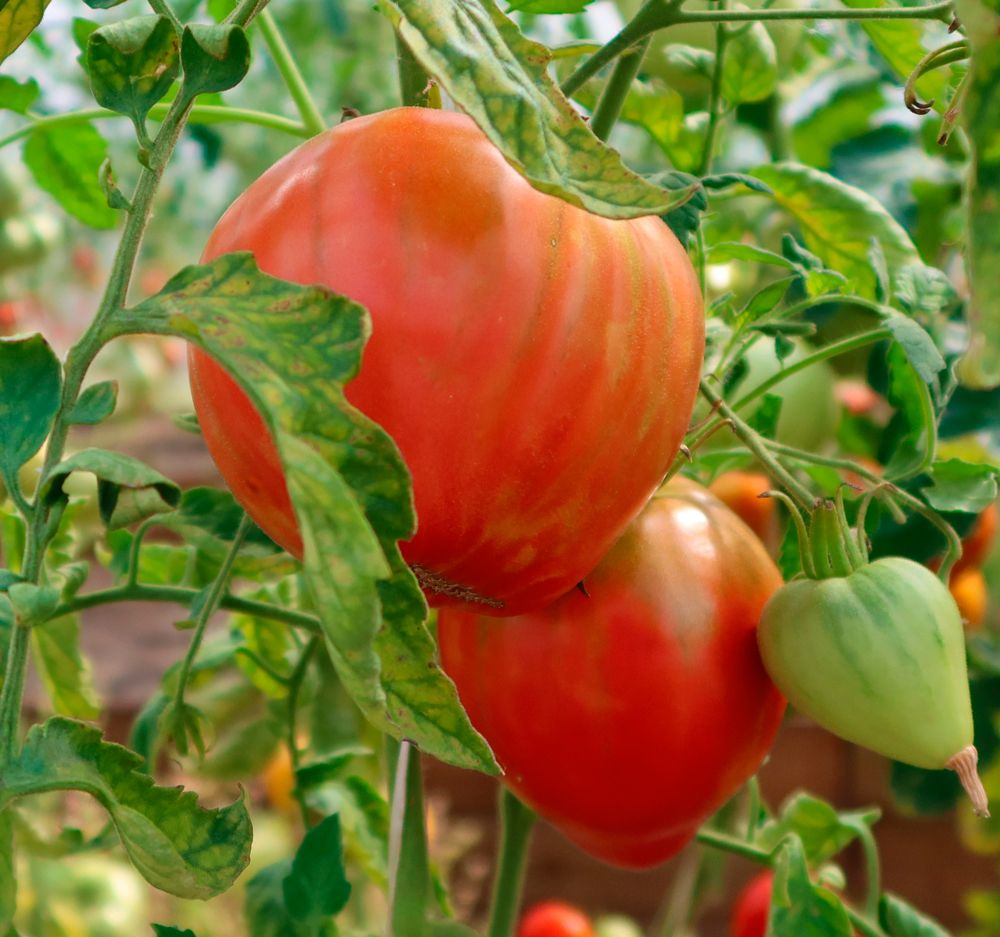 Плоды очень крупные, массой до 1 кг, имеют очень нежный вкус, великолепный помидорный аромат, зернистую мягкость, а урожайность на 60 % выше, чем у сорта «Бычье сердце». Прекрасно подходит для салатов, овощных ассорти и для приготовления соков.