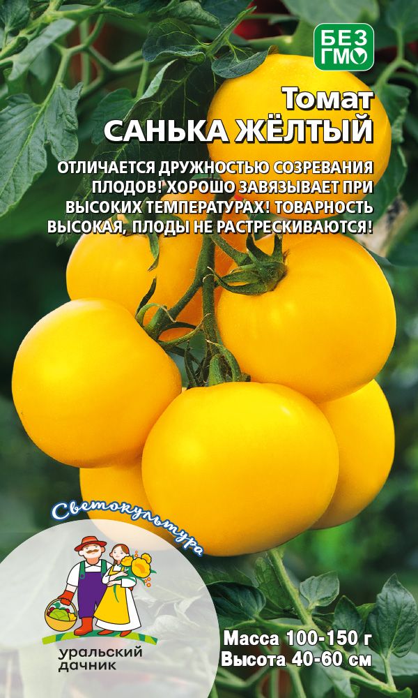 Невероятно урожайный, популярный, ультраранний сорт для открытого грунта и парников. Растение компактное, высотой 40-60 см. Плоды округлые, золотисто-жёлтые, слаборебристые, массой 100-150 г, плотные, сочные.