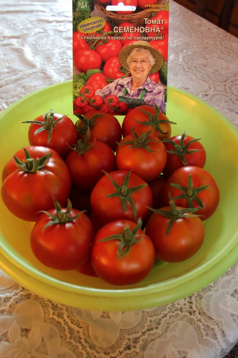 Не переживайте, много забот Семёновна® вам не доставит, сорт как настоящий Сибиряк приспособлен к резким перепадам температур и влажности в течение всего вегетационного периода, также его не нужно ни подвязывать, ни пасынковать, зато кустики будут сплошь покрыты круглыми, увесистыми плодами, массой 110-130 г, необычайно вкусными и полезными! Полезные они, так как в каждом плоде много витаминов: каротин 6,1 мг%, витамин «C» - 38,7 мг% и множество других, а вкус... как в сказке! Такие плоды будут желанными гостями на вашем столе в свежем виде, а как наедитесь, можно и консервировать, кстати лучше их делать в собственном соку по рецепту Семёновны. Сорт выведен в Сибири, без всяких там ГМО, для родных и любимых, детей и внуков с любовью!