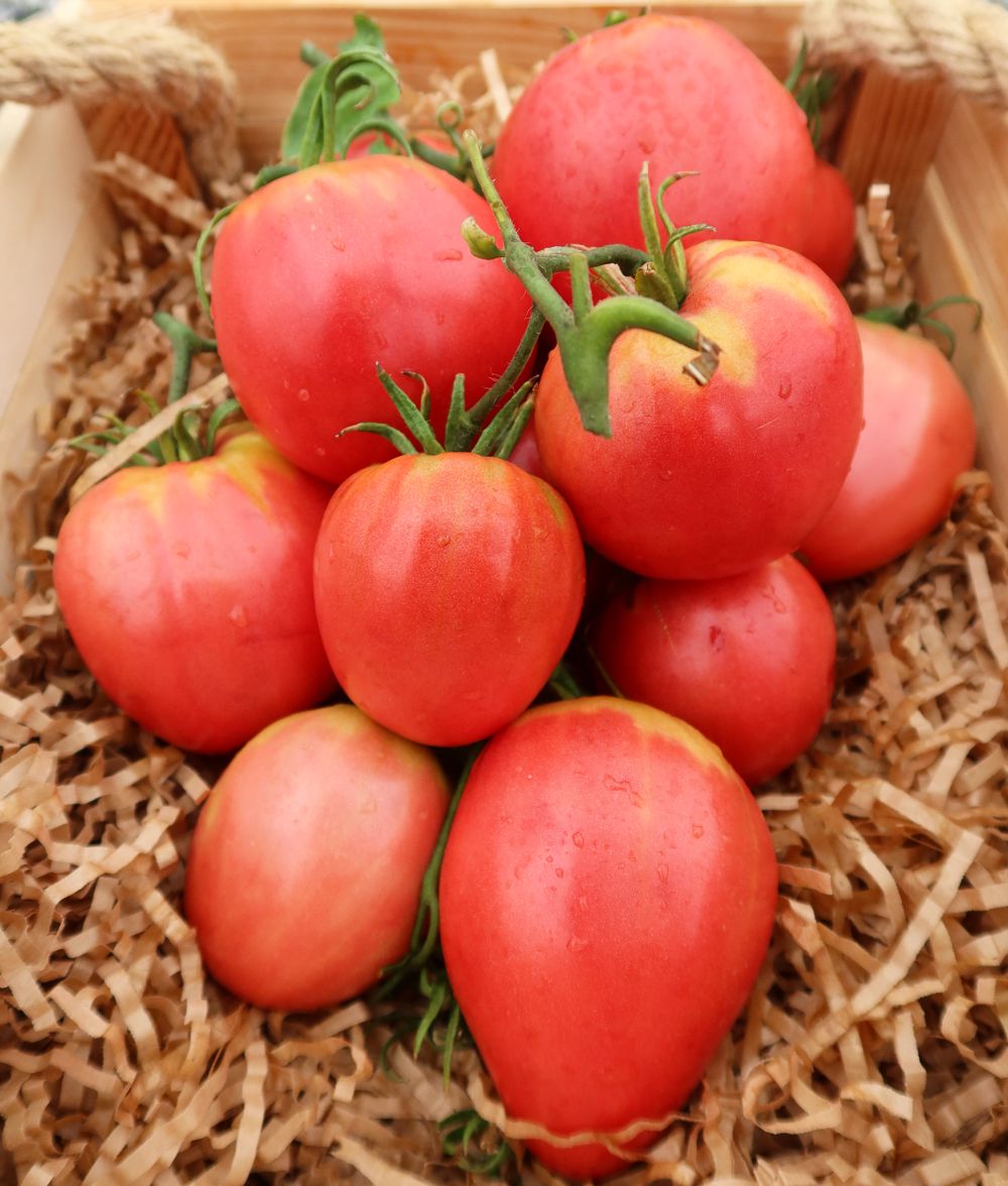 Слабооблиственный, лёгок в уходе и формировке. Высокая завязываемость до последней кисти. Сердцевидные плоды малиновой окраски достигают и превосходят килограмм. Салатного назначения. Мякоть сладкая на изломе зернистая.
