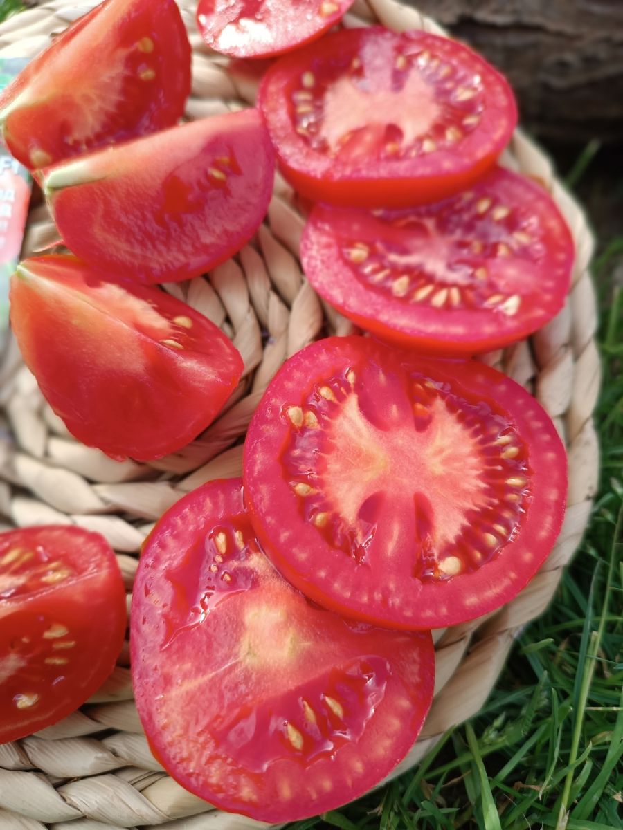 Манит и ласкает взгляд изумительный каскад искристо–красных плодов. Соседям на зависть! Высокорослый кистевой гибрид, с обильным плодоношением и дружным созреванием плодов. В кисти по 12 плодов, округлых, гладких, ярко-красных, выровненных, массой до 110 г. Великолепен в засолке.