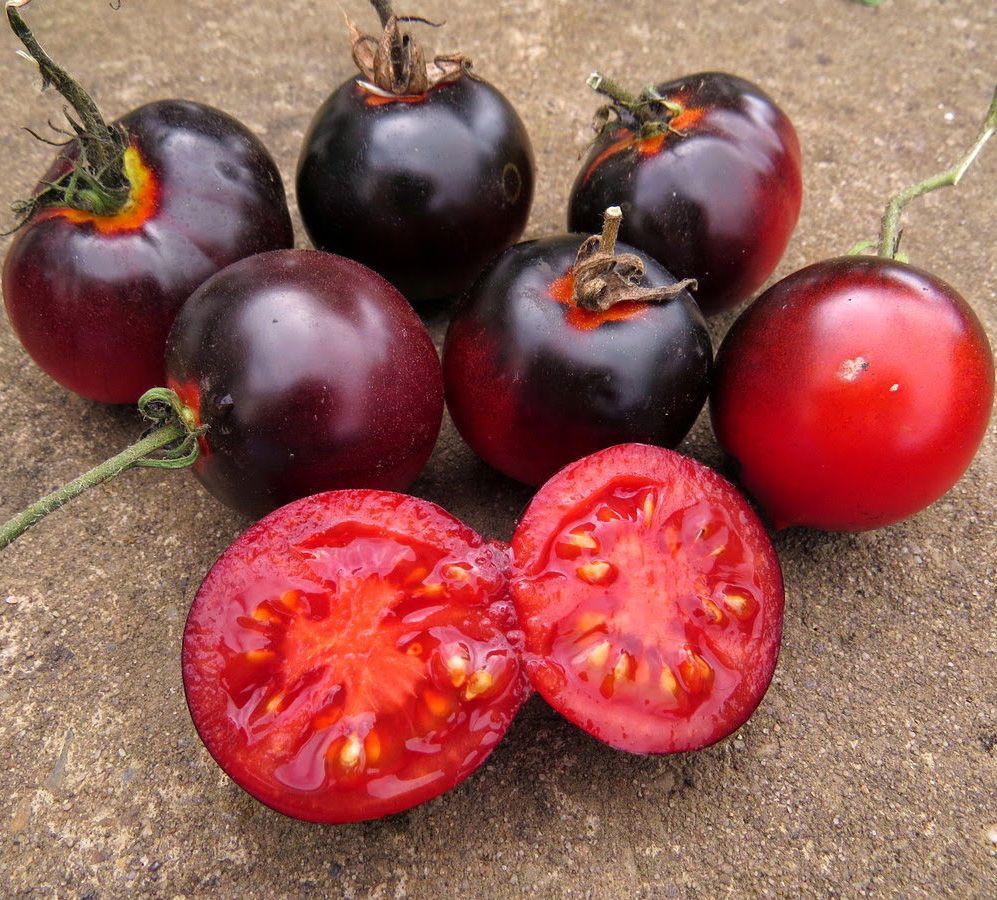 Польза для здоровья. Все дело в том, что окрас в насыщенный сине-фиолетовый оттенок возможен благодаря наличию в составе плода некого вещества под названием антоциан, именно он эффективно сжигает жиры, тем самым борется с проблемой ожирения, а также укрепить стенки сосудов, особенно капилляров, обладают противоотечным действием, являются иммуностимуляторами, помогает борьбе с раковыми клетками (являются антиоксидантами, т. е. способны связывать свободные радикалы, помогая избежать онкологических заболеваний) и обладают бактерицидными свойствами. Также весьма актуально употребление в пищу таких томатов даже при сахарном диабете. До выведения таких гибридов, антоцианы в столь большом количестве можно было встретить во всех ягодах синего цвета: чернике, голубике, бруснике, черной смородине. Теперь вот даже томаты способны весьма эффективно повоевать с лишними килограммами и помочь поправить здоровье.