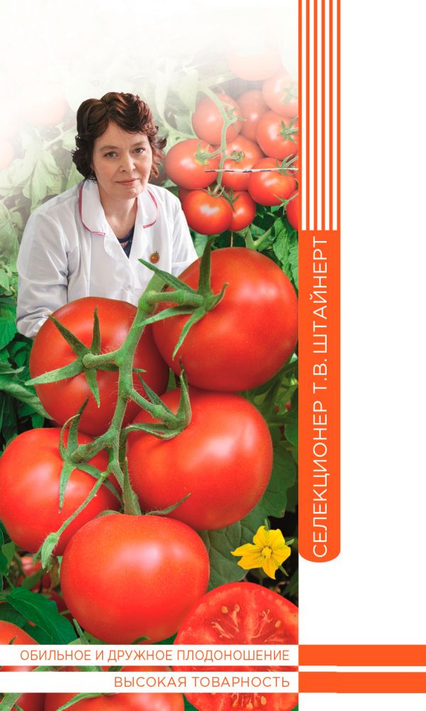 Высокоурожайный гибрид для открытого грунта, теплиц и временных укрытий. Среднеспелый, созревает на 107-110 сутки от посева. Индетерминантный куст со средней облиственностью, высота его в теплице – 140-160 см, в открытом грунте – 90-110 см. Плоды округлые, выравненные, слаборебристые, с прочной кожицей массой 120-140 г, отдельные до 250 г собраны в плотные кисти по 4-5 шт. В открытом грунте – 12-13 кг/м2, в теплице – до 18-20 кг/м2. Качество плодов соответствует европейским стандартам. Универсального назначения.