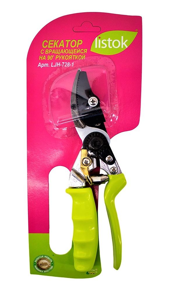Идеально подходит для применения в саду. Обеспечивает удобное и ровное срезание. Тефлоновая поверхность лезвия обеспечивает легкость хода и защиту от коррозии. Рукоятка секатора имеет поворотный механизм, предохраняющий ладонь от образования мозолей.