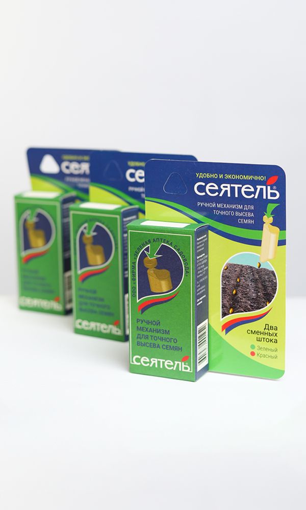 Для точного высева семян в грунт. При посеве мелких семян диаметром до 1,5 мм таких, как: морковь, салат, петрушка, укроп - использовать зелёный шток; а на семена диаметром до 3,5 мм, а это: дражированные семена, редис, лук и другие - высевать с красным штоком.